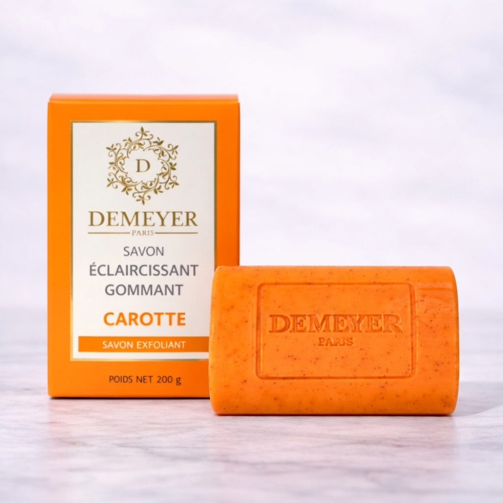 Product details: Our Carrot Oil Exfoliating Soap is a unique beauty product, specially formulated to combat skin imperfections and blemishes. Its composition, rich in carrot oil, a source of vitamin A and antioxidants, not only brightens the complexion, but also visibly reduces blemishes.